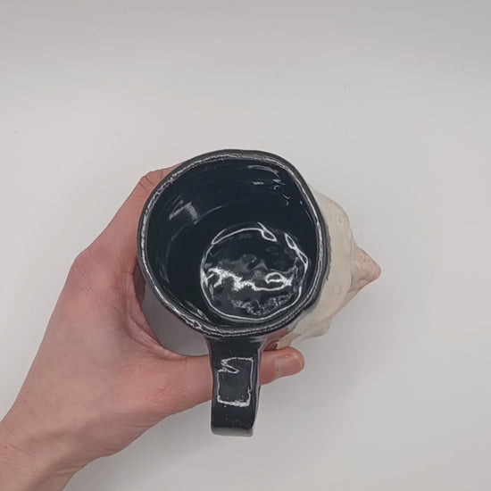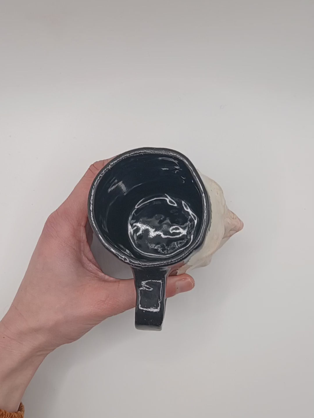 My Mugs are hand sculped and glazed to create a super glossy finish. They're fully functional and food/drink safe and full of character.