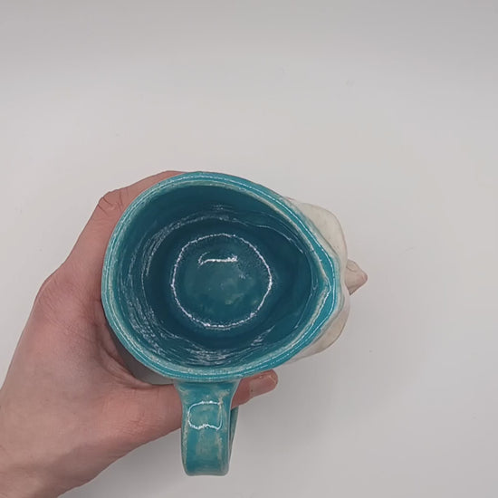 My Mugs are hand sculped and glazed to create a super glossy finish. They're fully functional and food/drink safe and full of character.