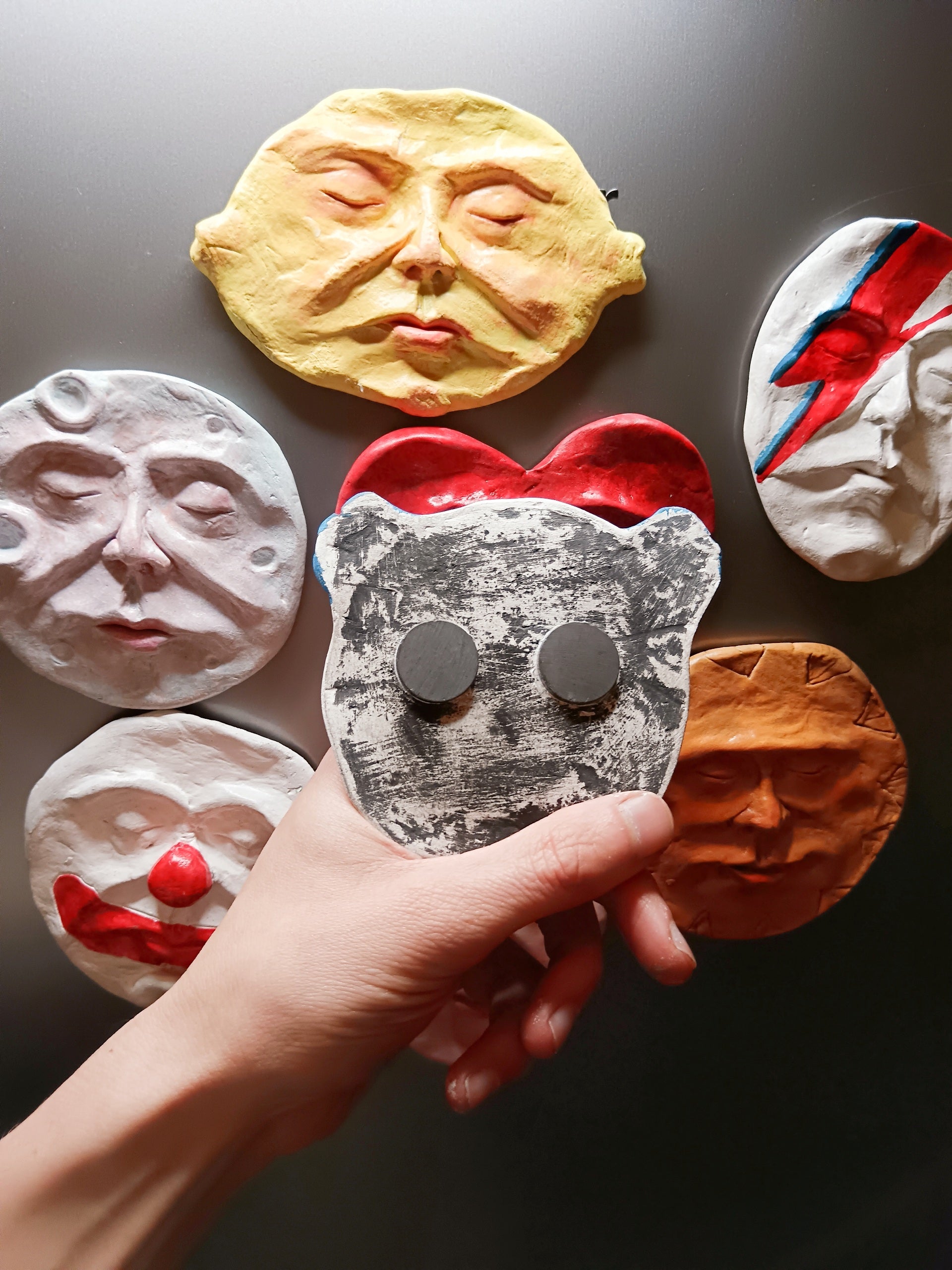Add a touch of cute quirkiness to your kitchen with these handmade face magnets! Each piece is carefully sculpted from high-quality modelling clay, hand painted and finished with a clear lacquer for durability. Each face is one-of-a-kind with its own unique expression and character!