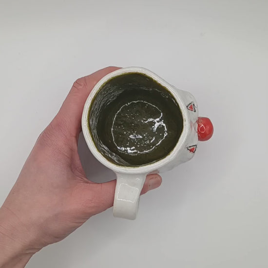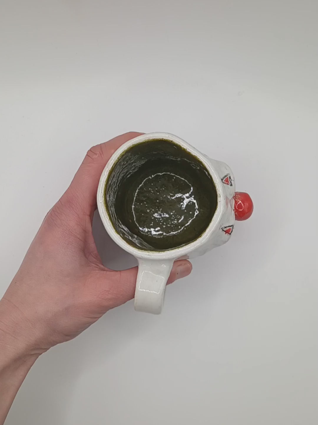 My Mugs are hand sculped and glazed to create a super glossy finish. They're fully functional and food/drink safe and full of character.
