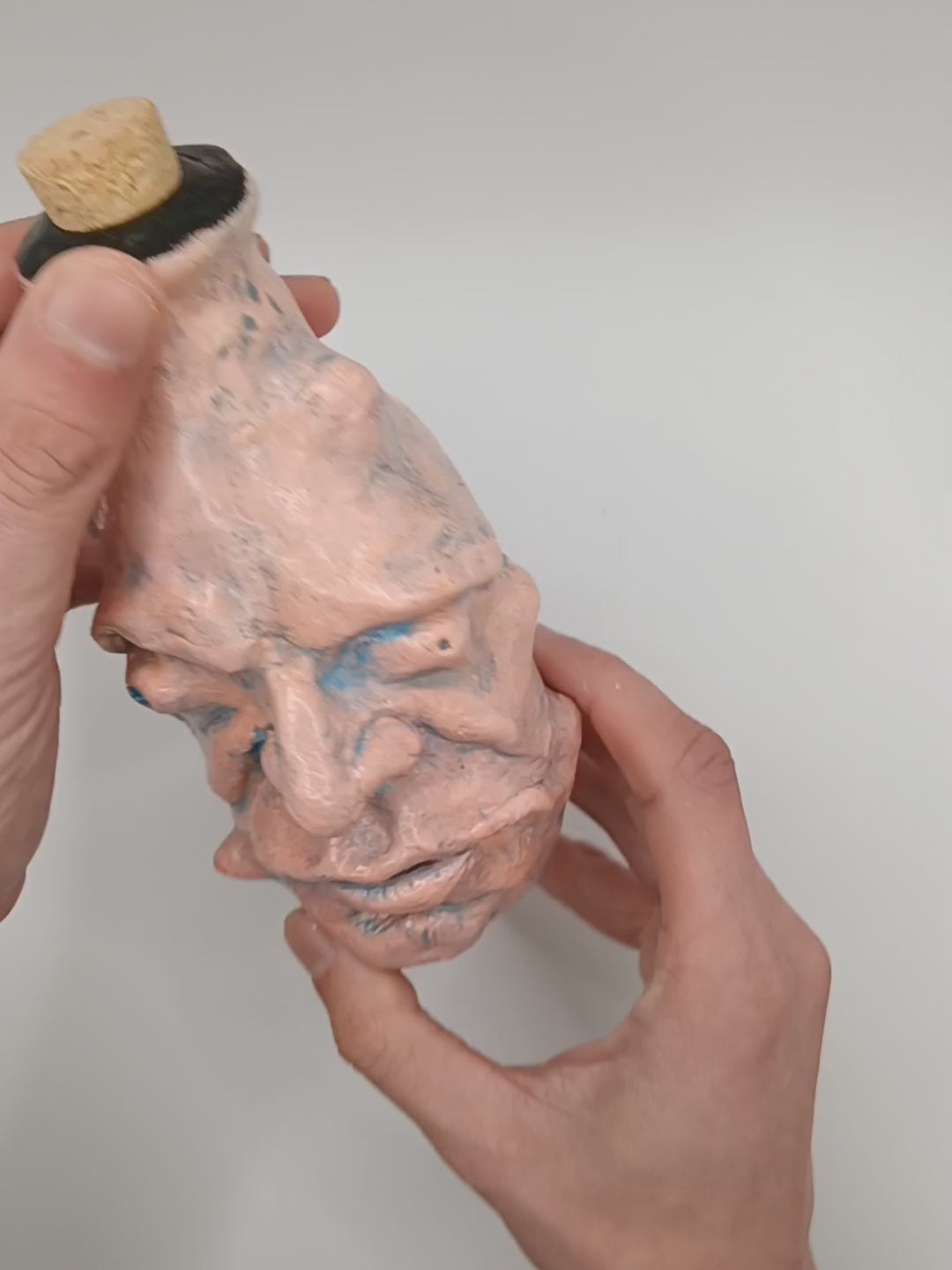 This decorative bottle is hand sculpted with high quality modelling clay around glass so they can be used as a vase for fresh/dry flowers or be admired as a stand alone ornamental oddity. Hand painted with acrylics and finished with a clear lacquer for durability.