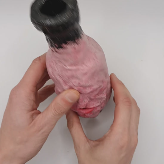 This quirky decorative vase is hand sculpted with high quality modelling clay around glass so it can be used for fresh/dry flowers or be admired as a stand alone ornamental oddity. It's hand painted with acrylics and finished with a clear lacquer for durability.