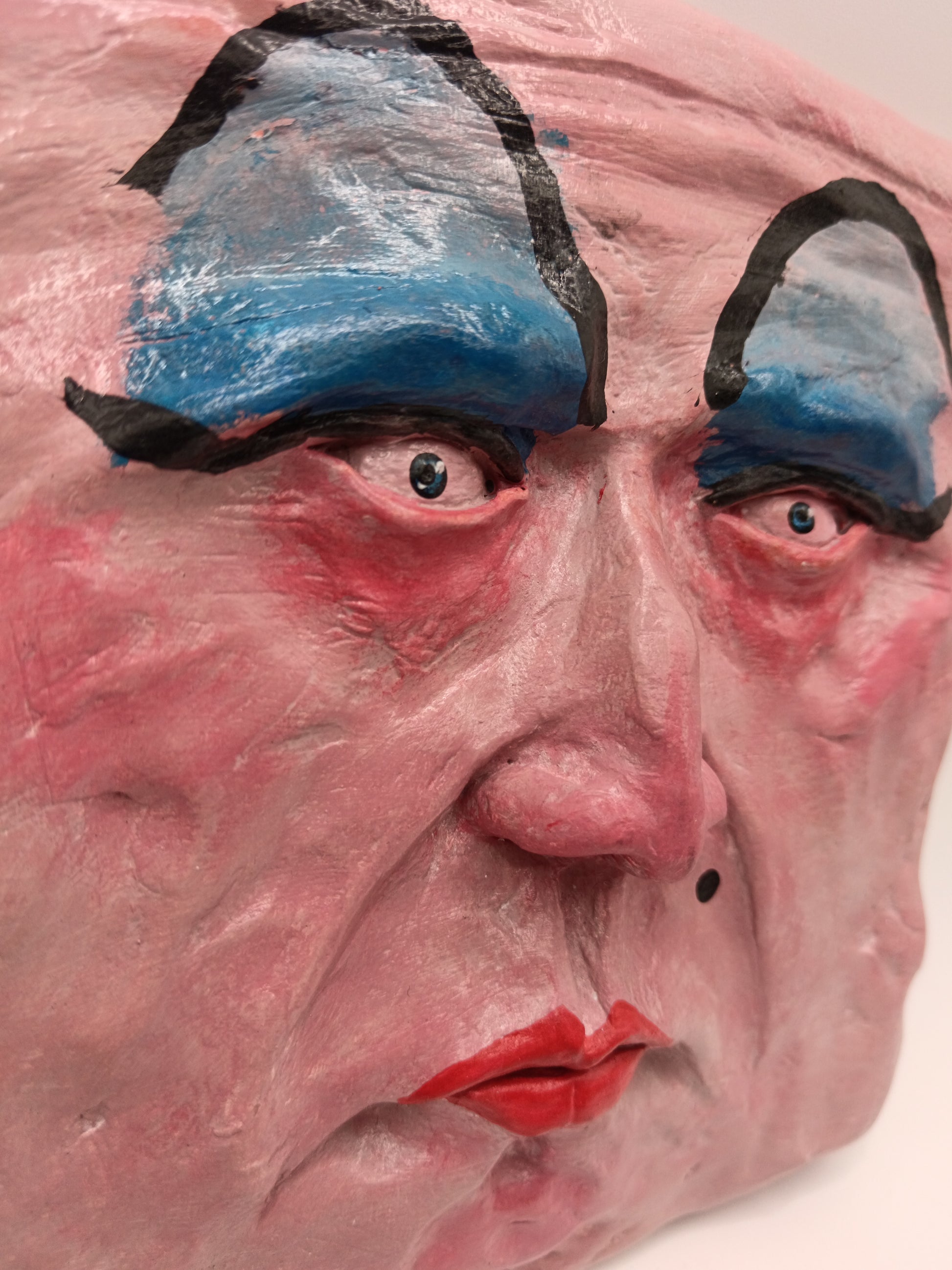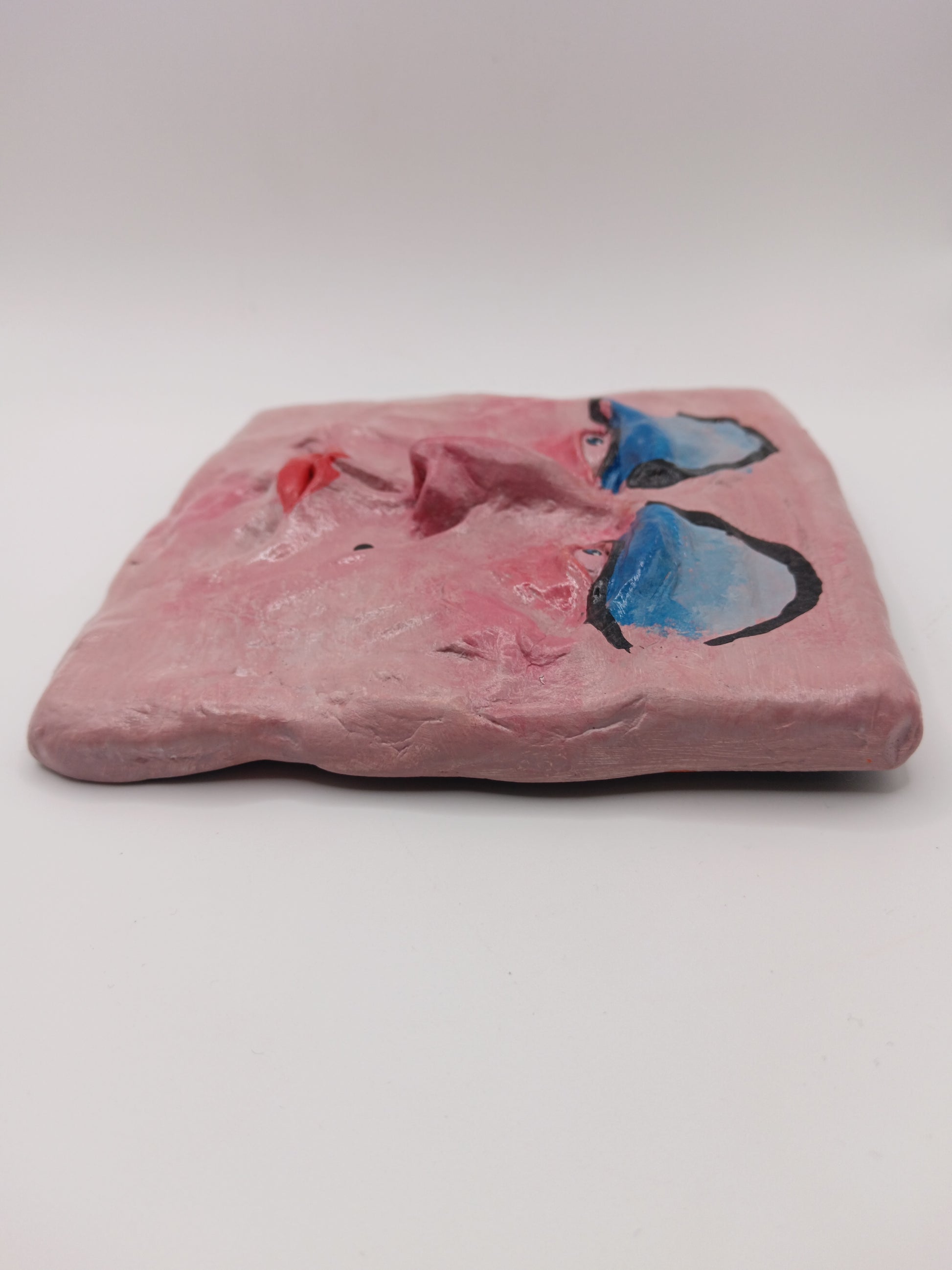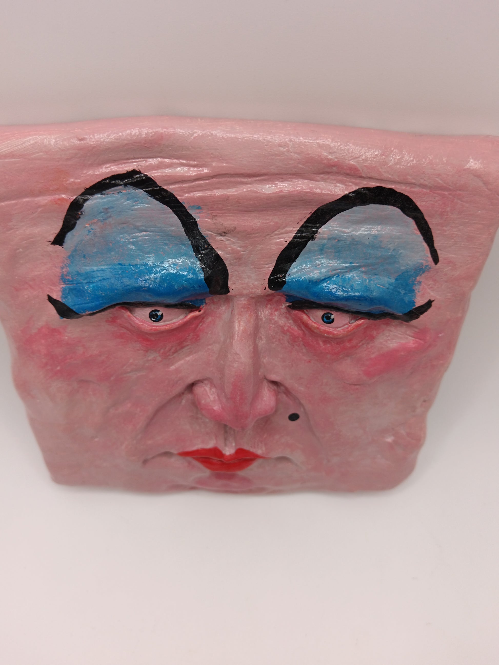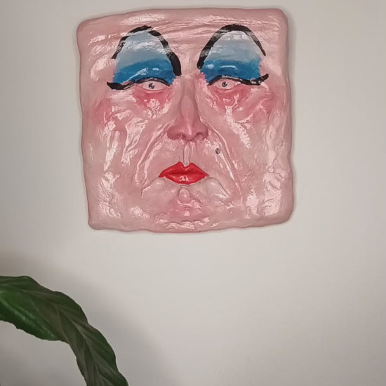 This quirky character is a hand sculpted and hand painted 1-of-1 wall sculpture: a truly unique sculpture for a unique home.