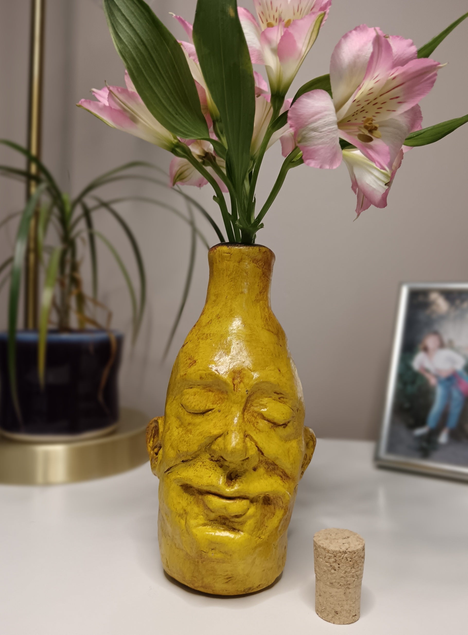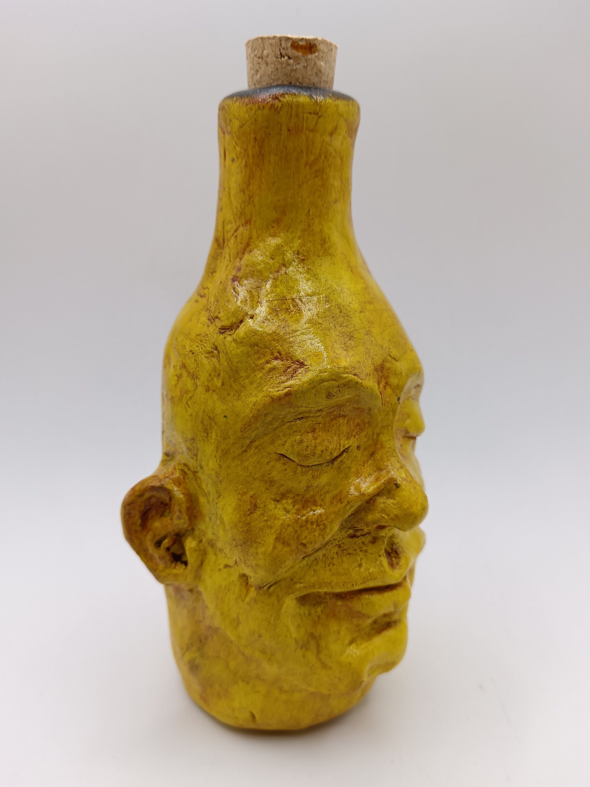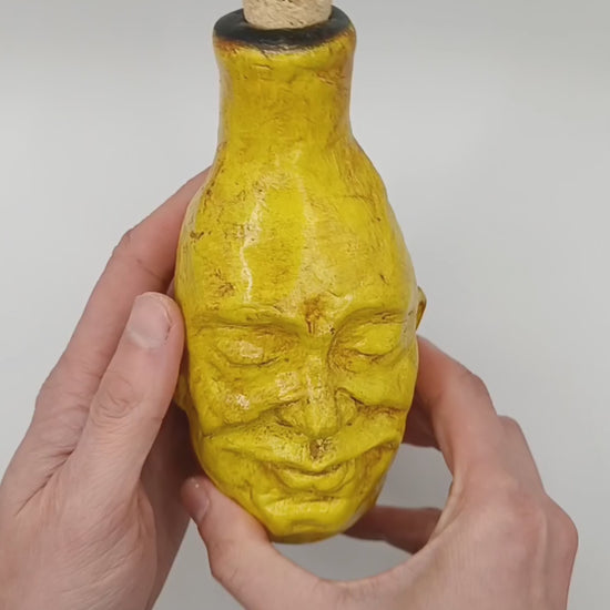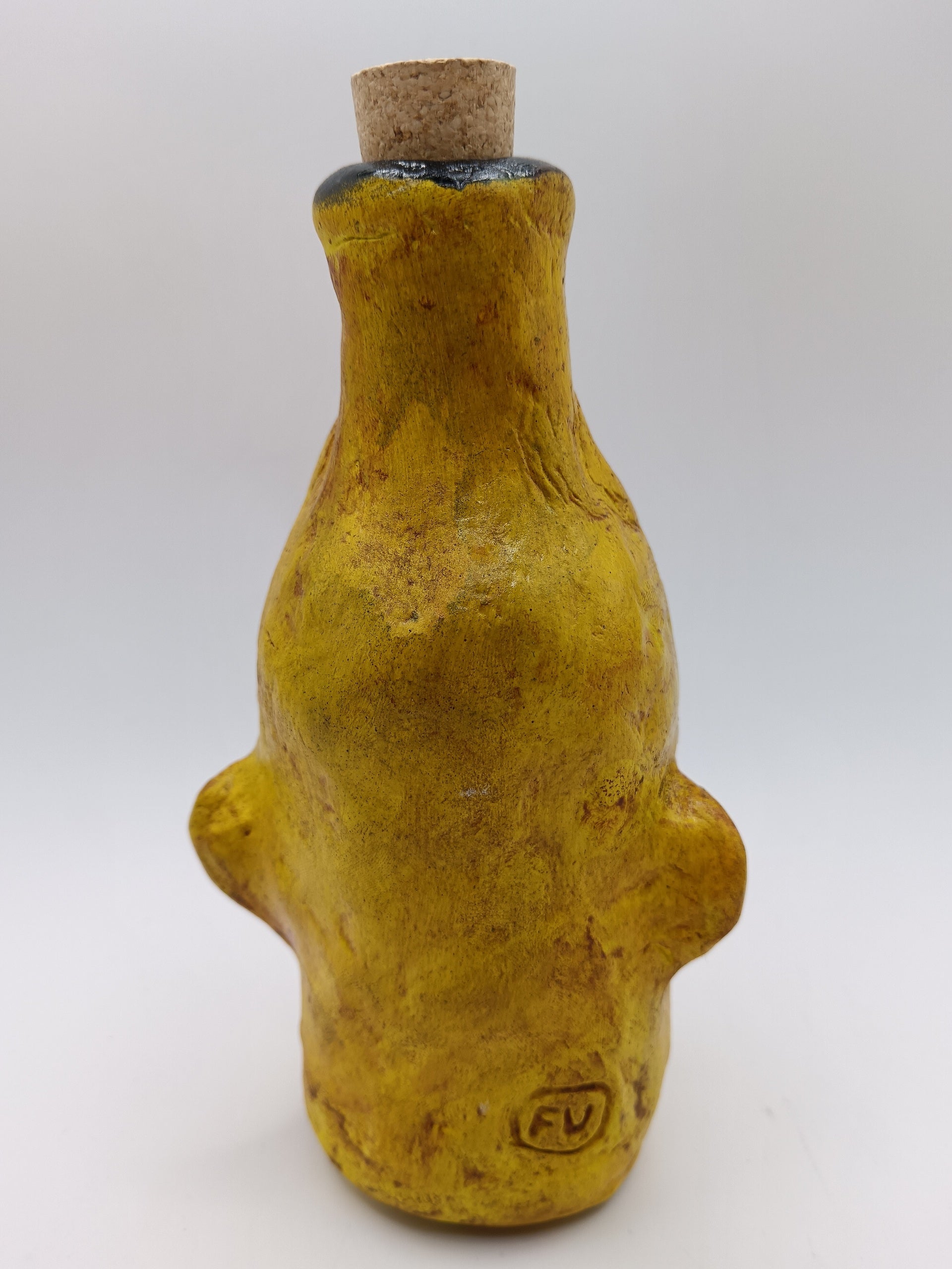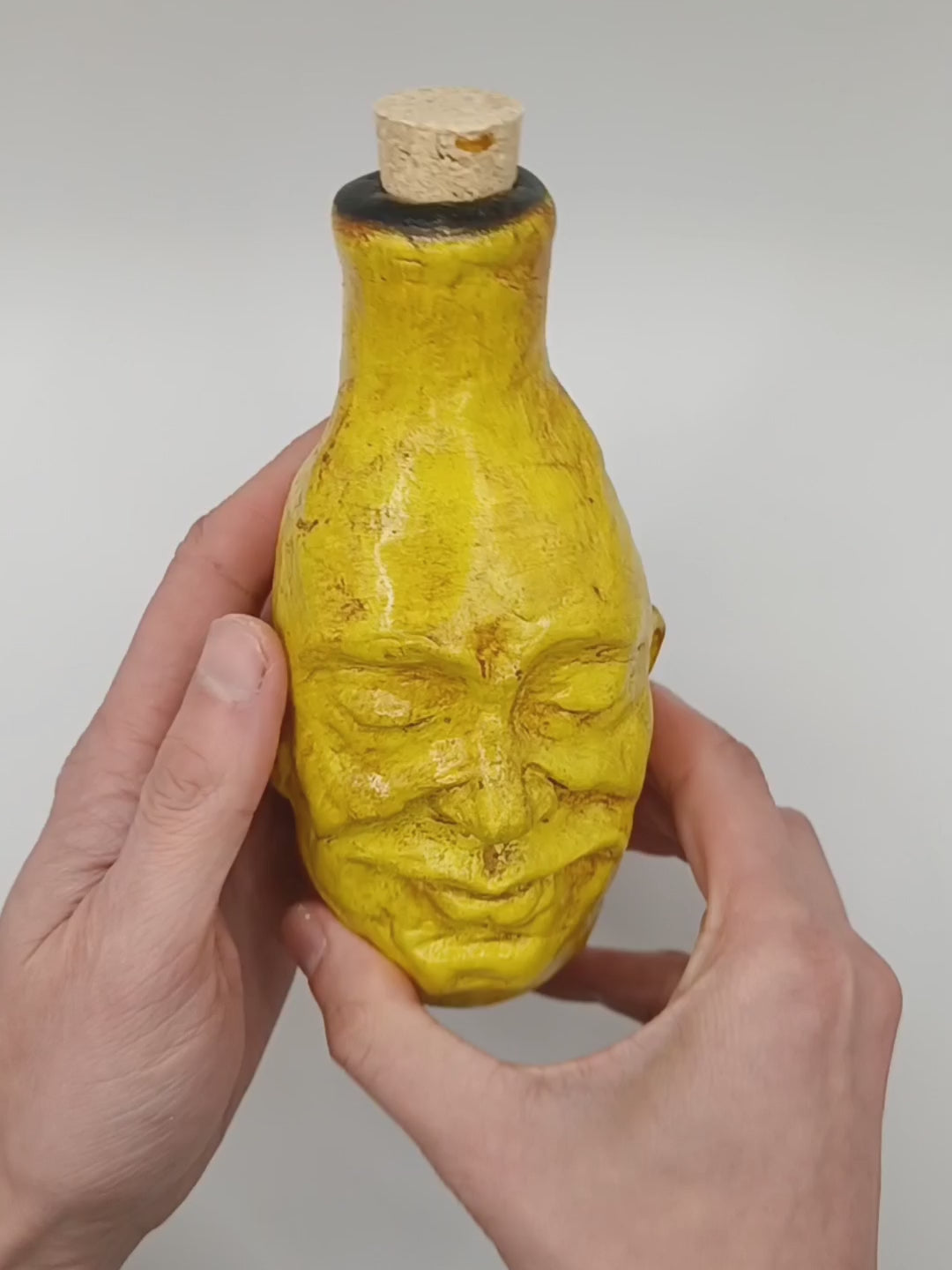This decorative bottle is hand sculpted with high quality modelling clay around glass so they can be used as a vase for fresh/dry flowers or be admired as a stand alone ornamental oddity. Hand painted with acrylics and finished with a clear lacquer for durability.