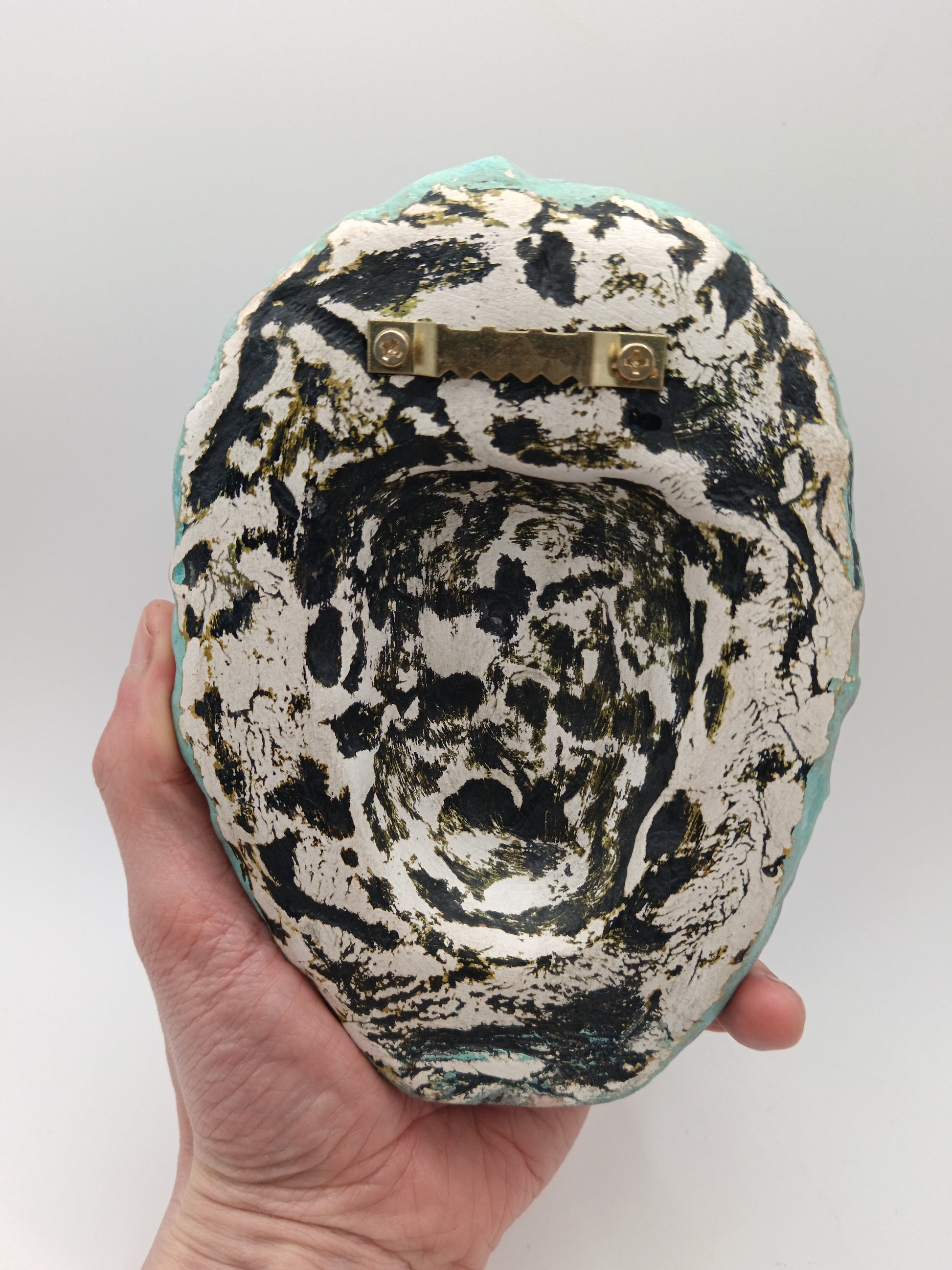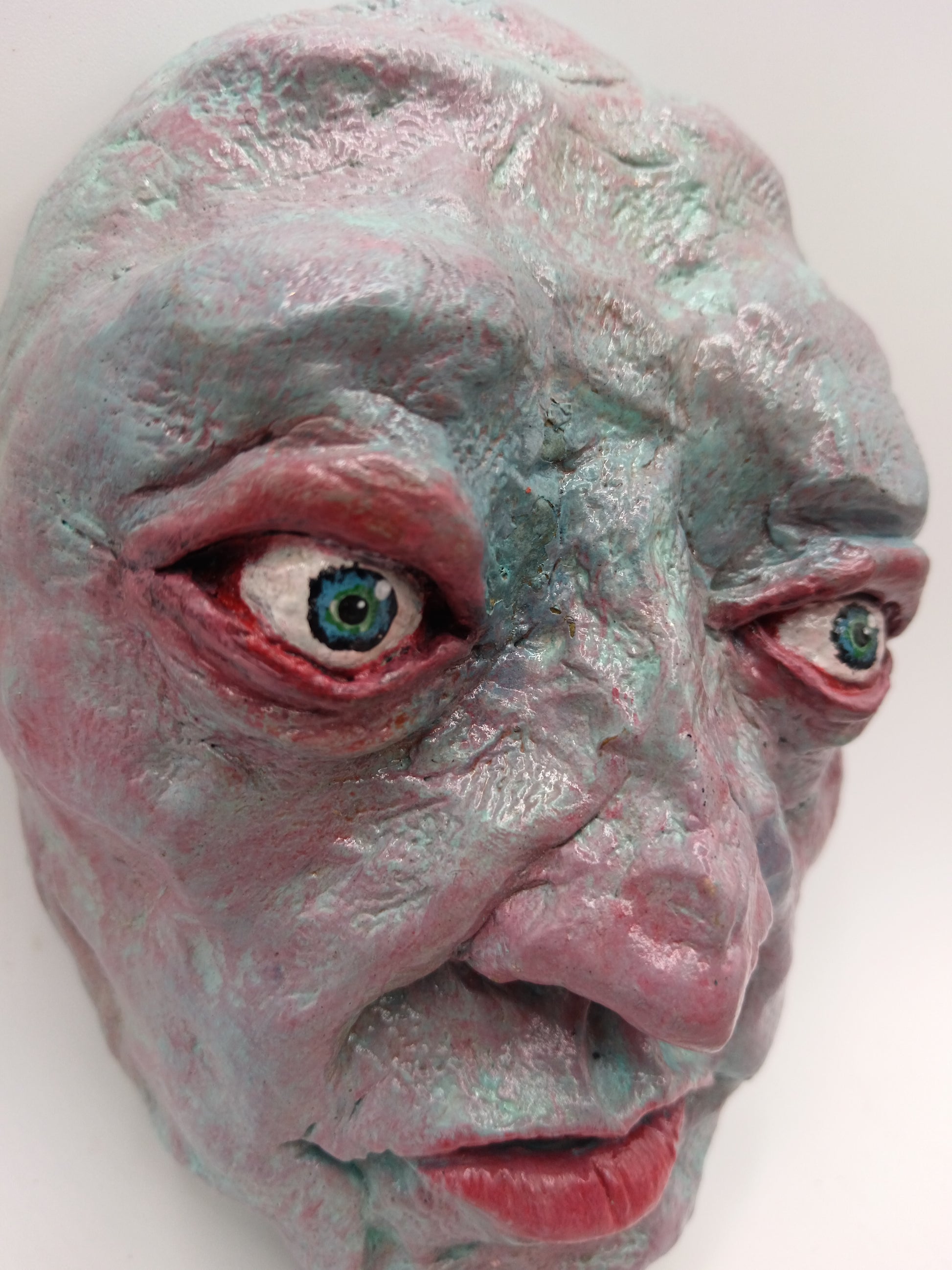 Full of detail and Inspired by love of everything creepy and weird, this sculpture can be easily wall-mounted with a well secured nail using the sawtooth hanger on the back.