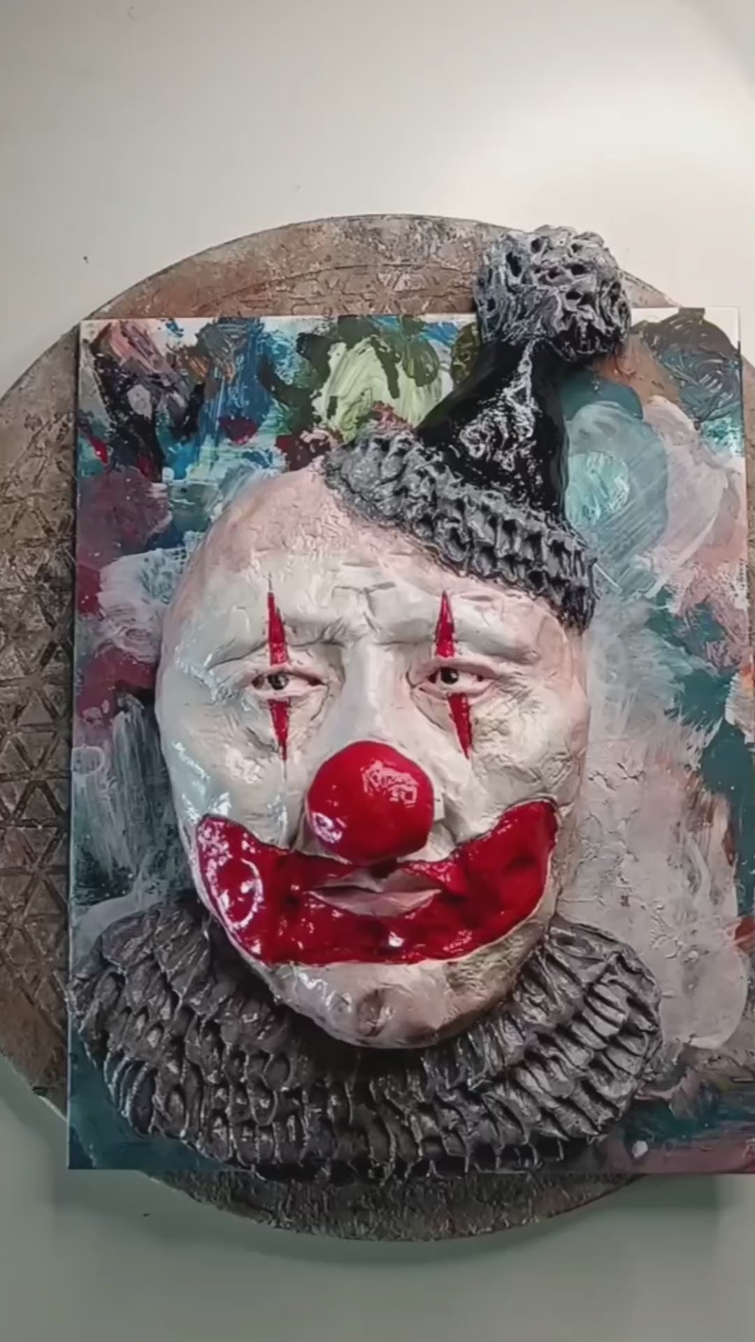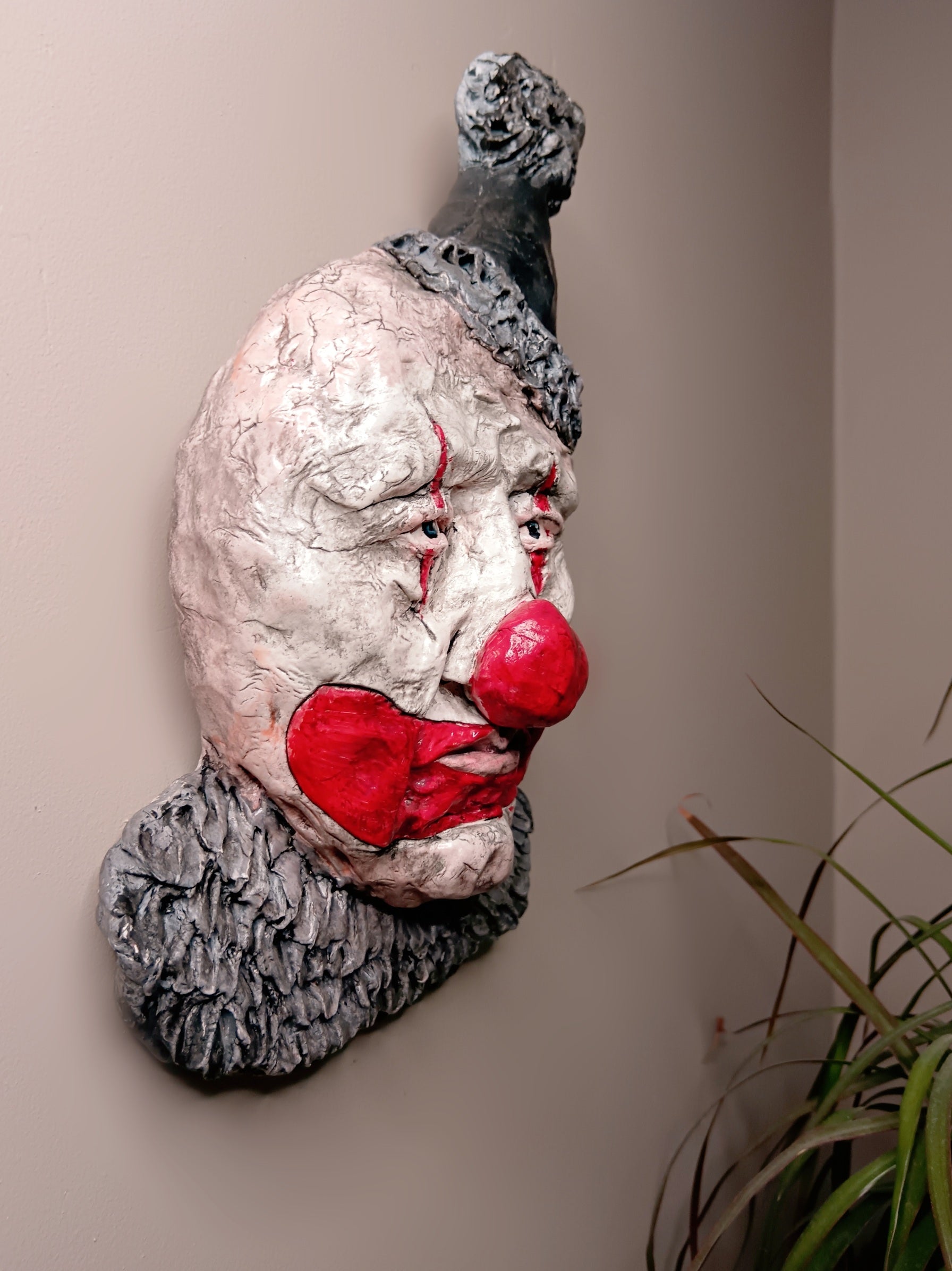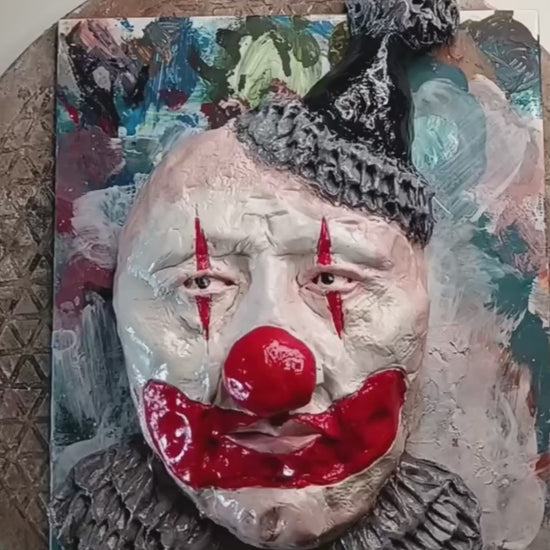 INKSPOT THE CLOWN – One-of-a-Kind Hand-Sculpted Clay Sculpture & Wall Art