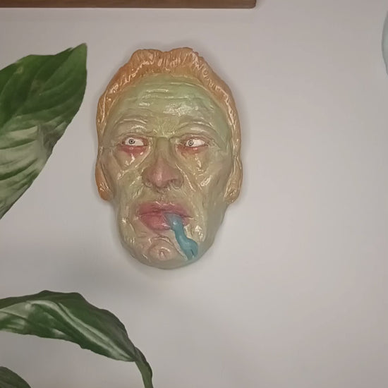 Full of detail and Inspired by love of everything creepy and weird, this sculpture can be easily wall-mounted with a well secured nail using the sawtooth hanger on the back.