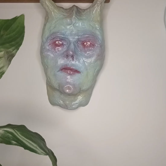Full of detail and Inspired by love of everything creepy and weird, this sculpture can be easily wall-mounted with a well secured nail using the sawtooth hanger on the back.