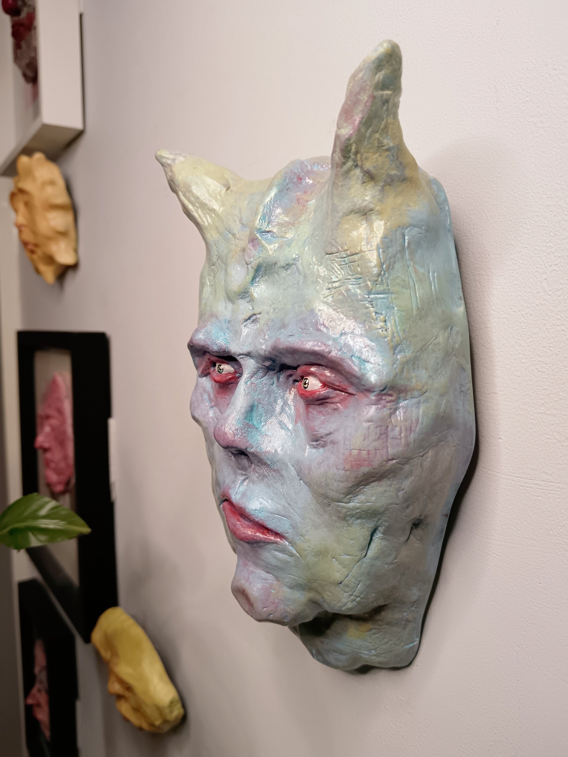 PASTEL DEMON – One-of-a-Kind Hand-Sculpted Clay Sculpture & Wall Art