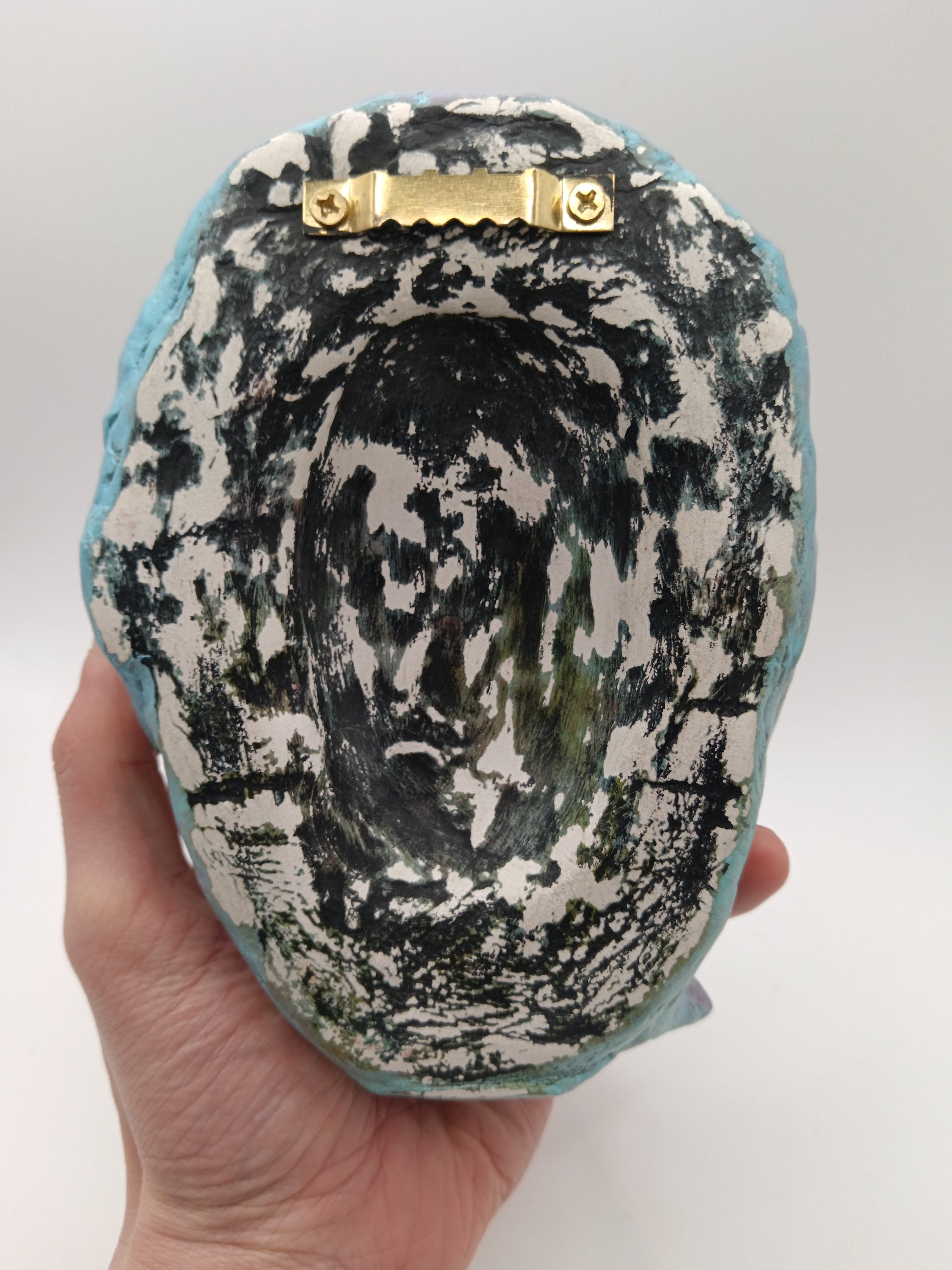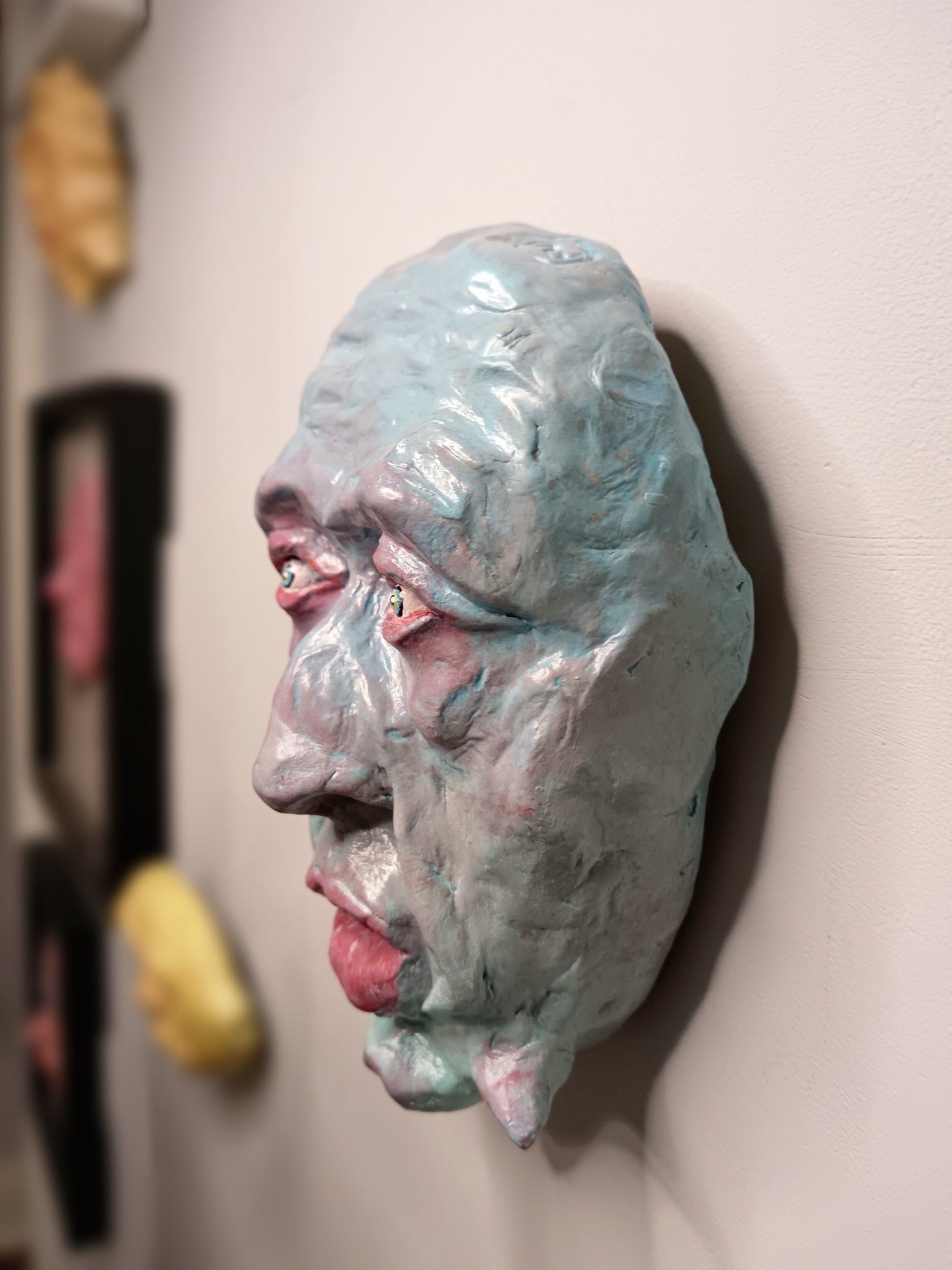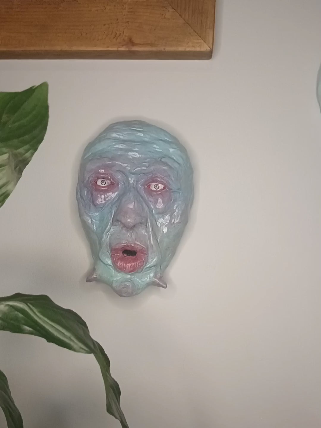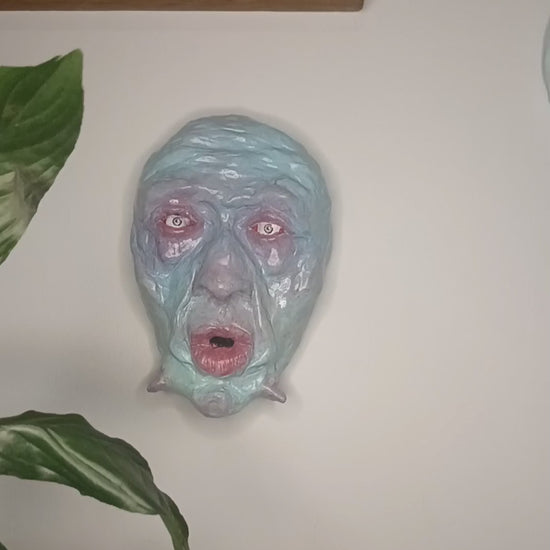 Full of detail and Inspired by love of everything creepy and weird, this sculpture can be easily wall-mounted with a well secured nail using the sawtooth hanger on the back.