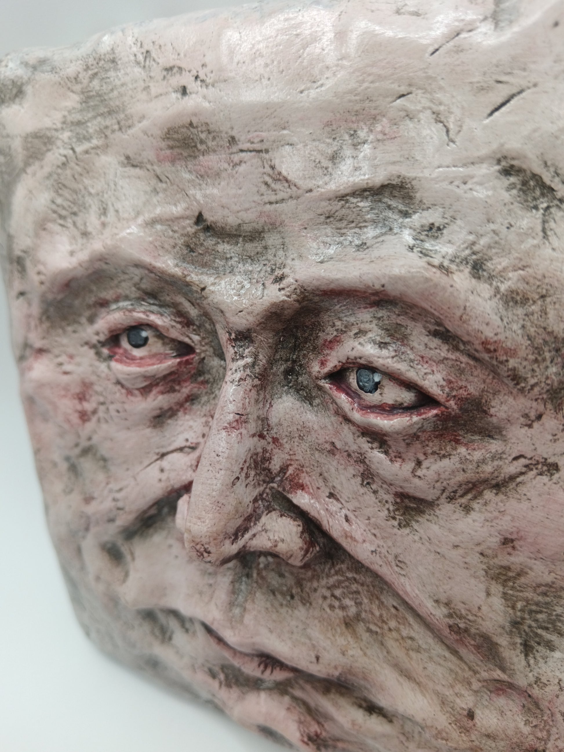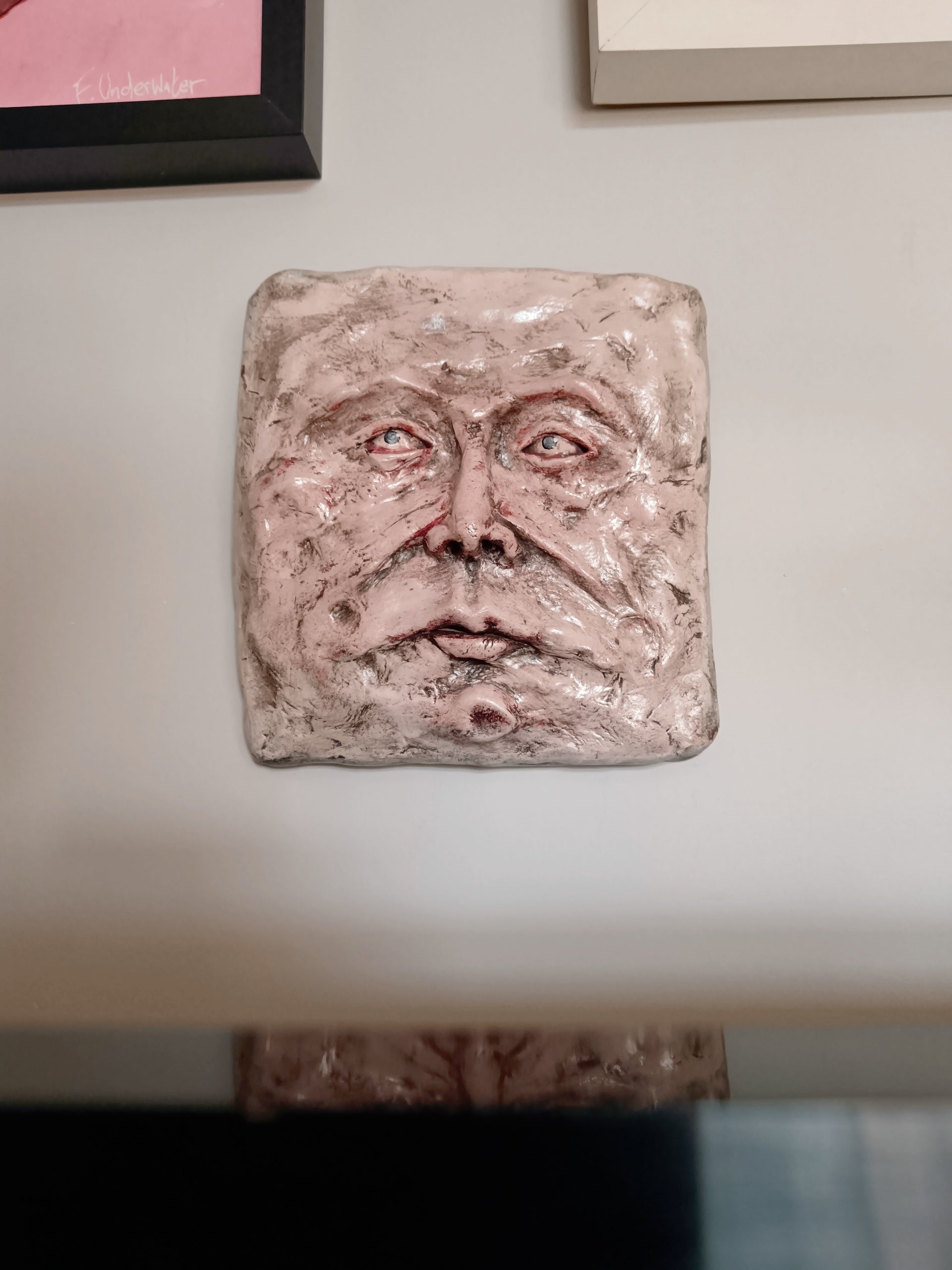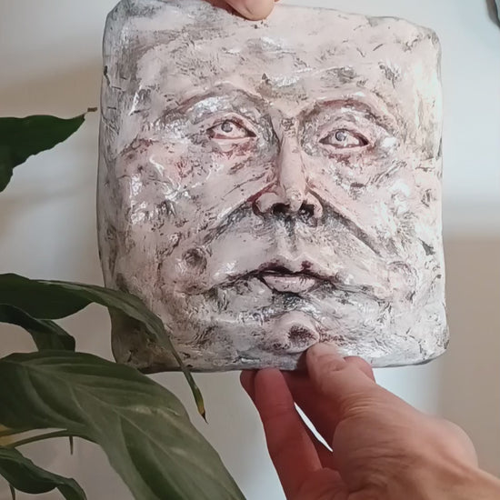 This whimsical character is a hand sculpted and hand painted 1-of-1 wall sculpture: a truly unique sculpture for a unique home.