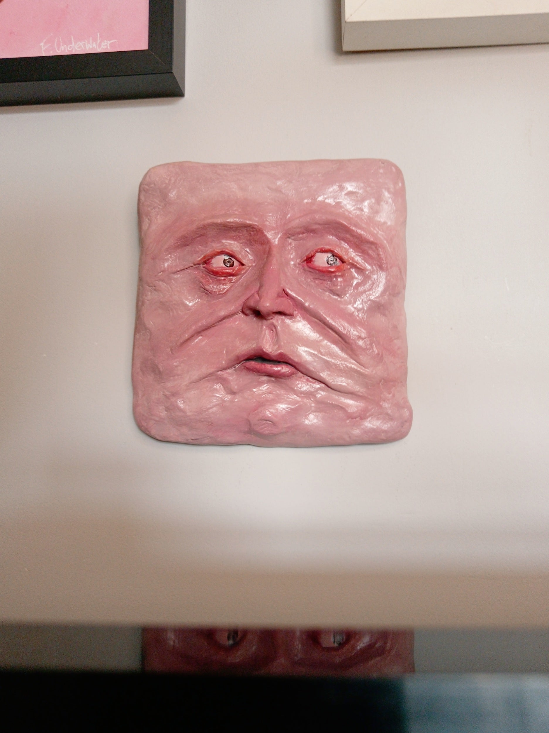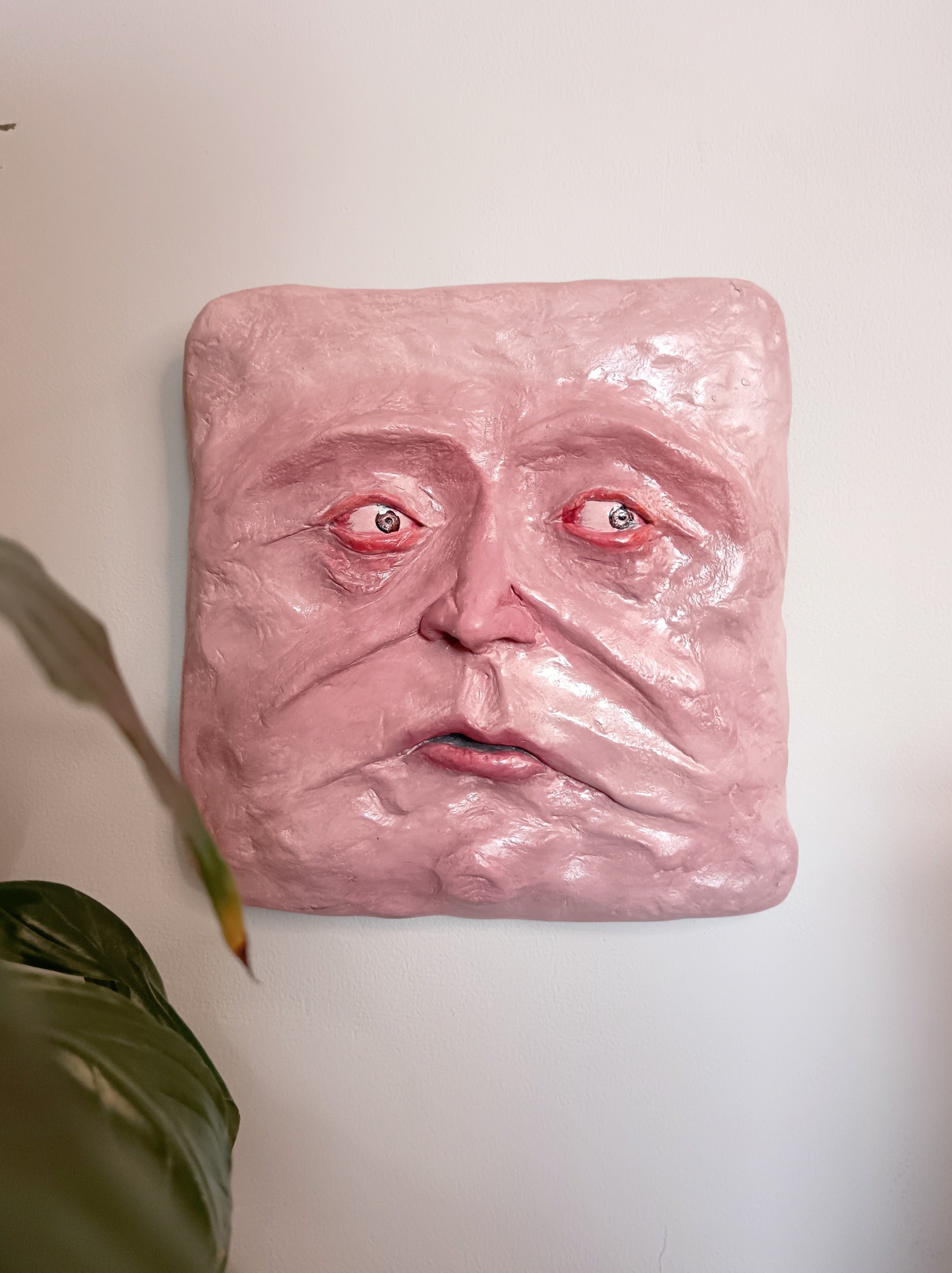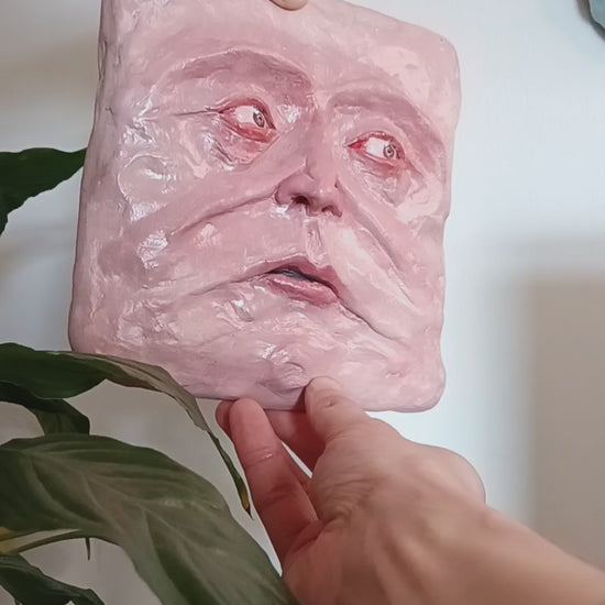 This quirky character is a hand sculpted and hand painted 1-of-1 wall sculpture: a truly unique sculpture for a unique home.