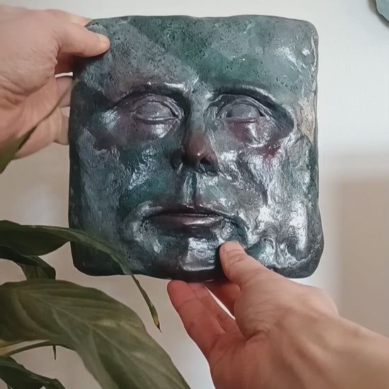 This charming character is a hand sculpted and hand painted 1-of-1 wall sculpture: a truly unique sculpture for a unique home.