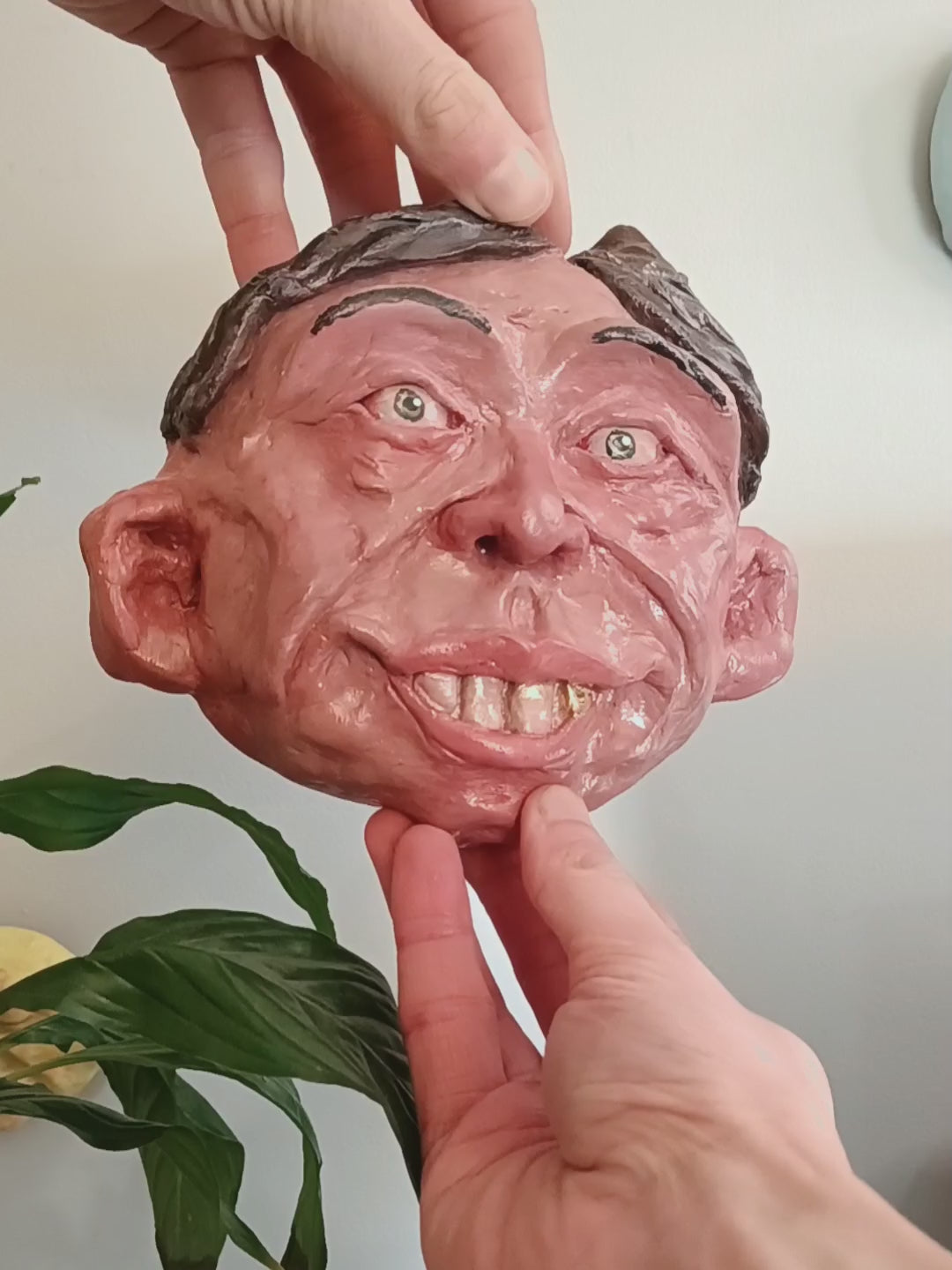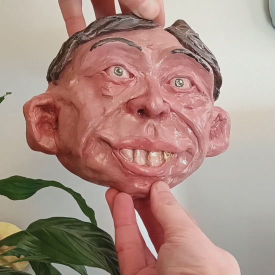 This goofy guy is a hand sculpted and hand painted 1-of-1 wall sculpture: a truly unique sculpture for a unique home.