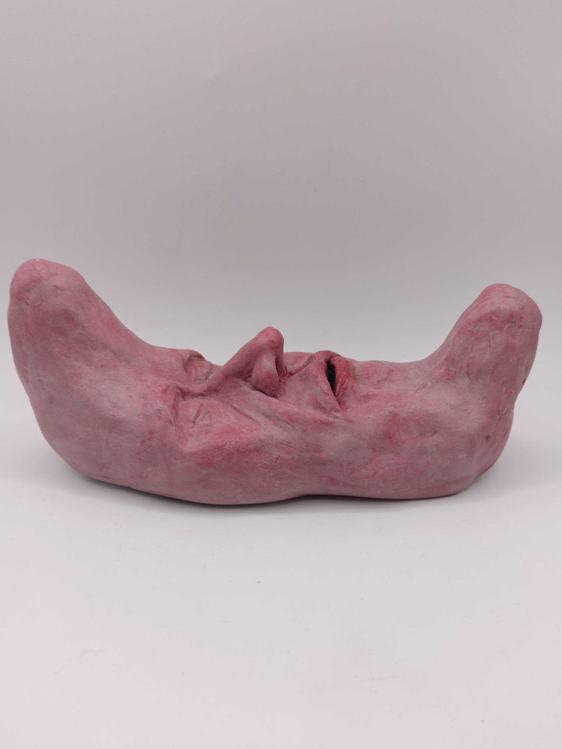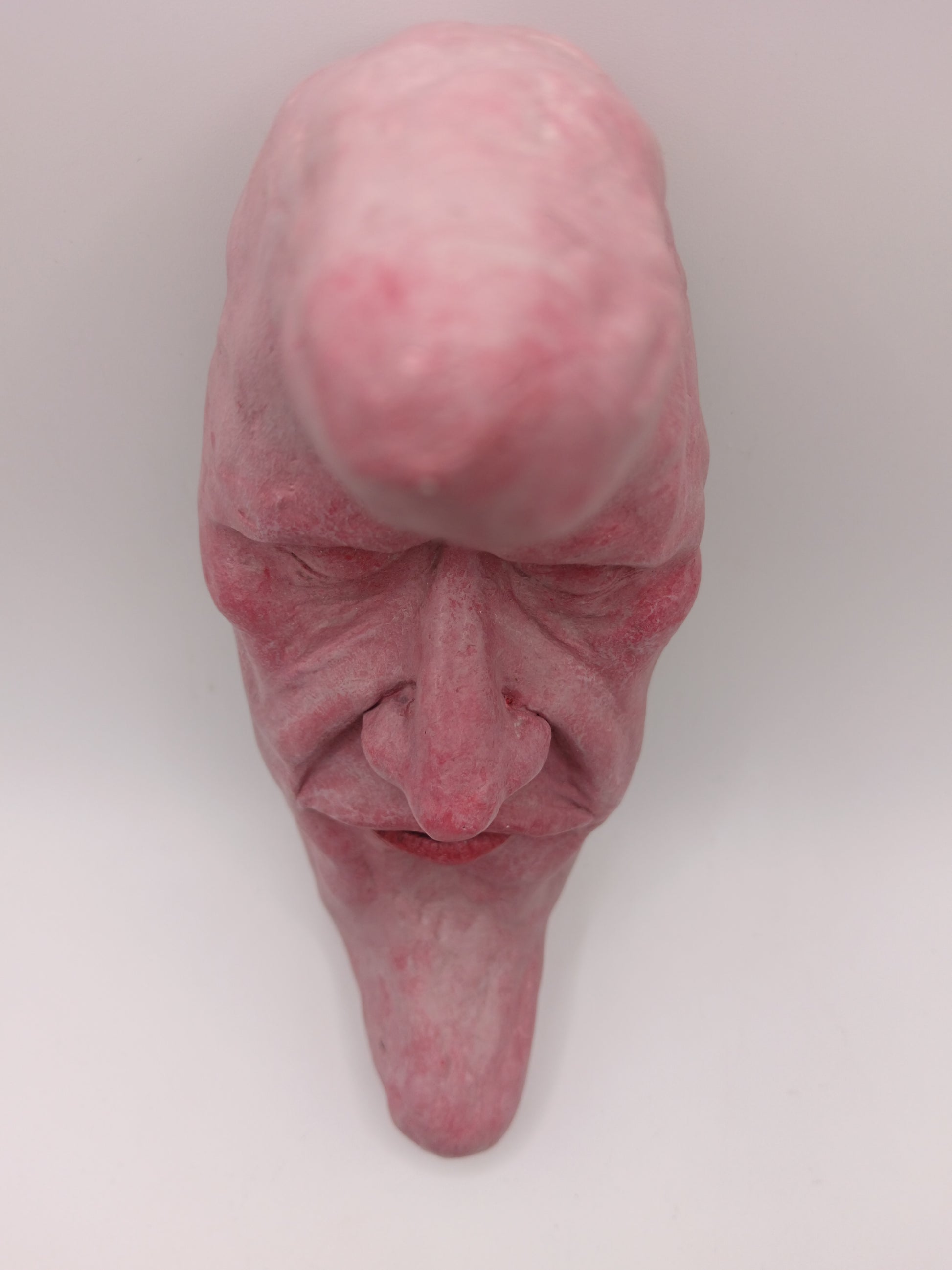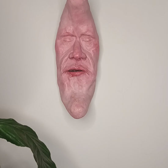 This strange character is a hand sculpted and hand painted 1-of-1 clay wall sculpture: a truly unique sculpture for a unique home.