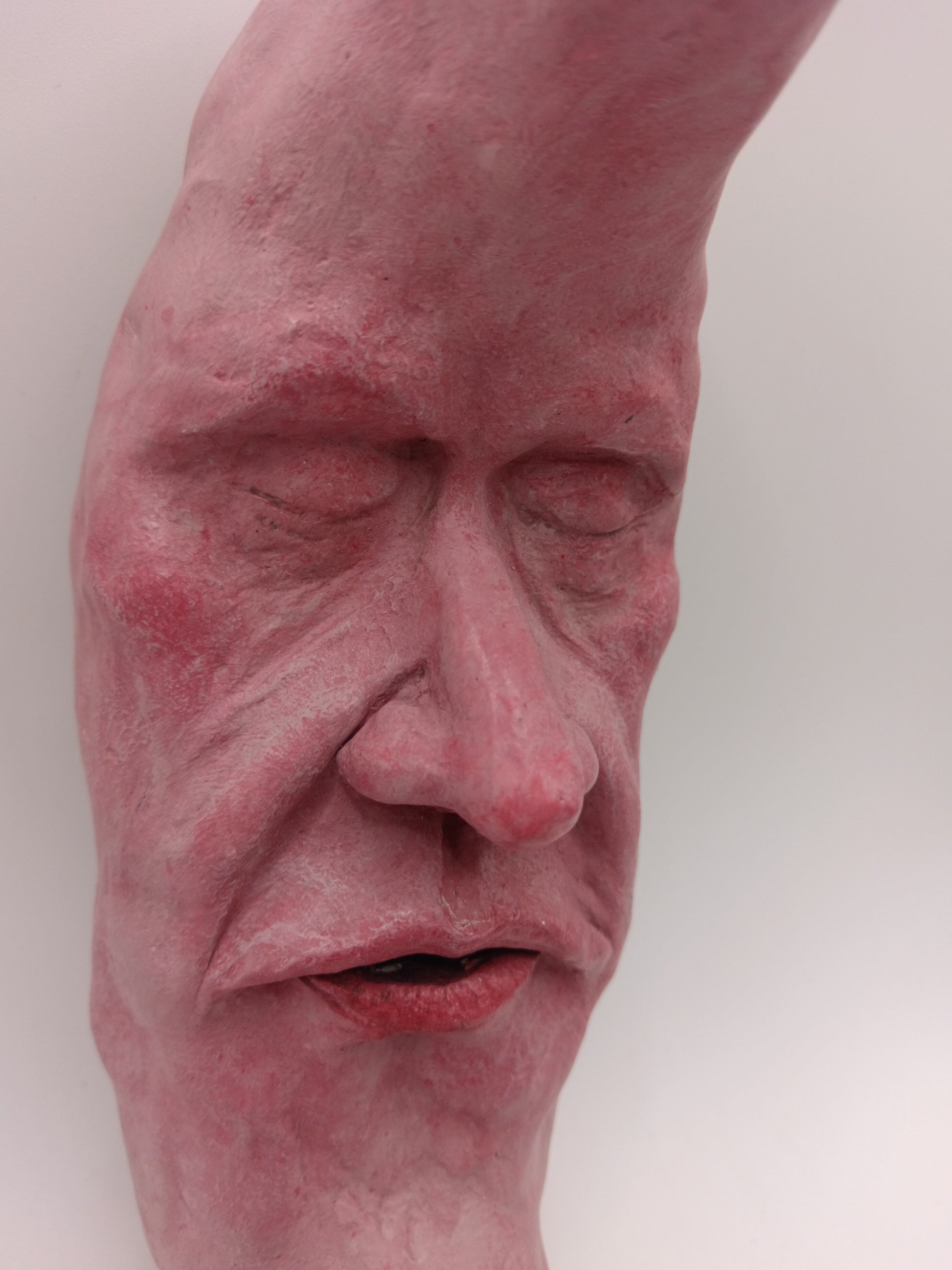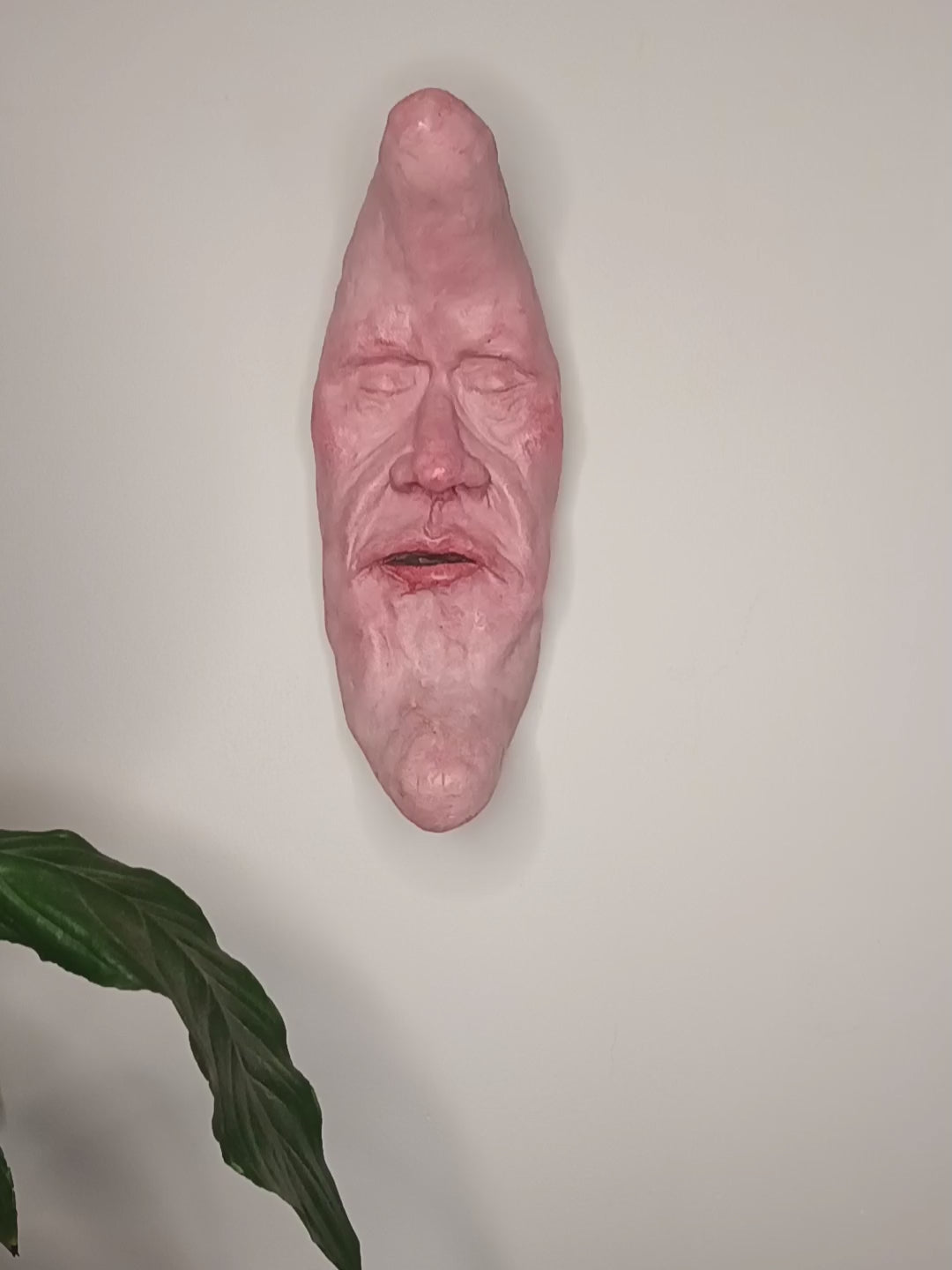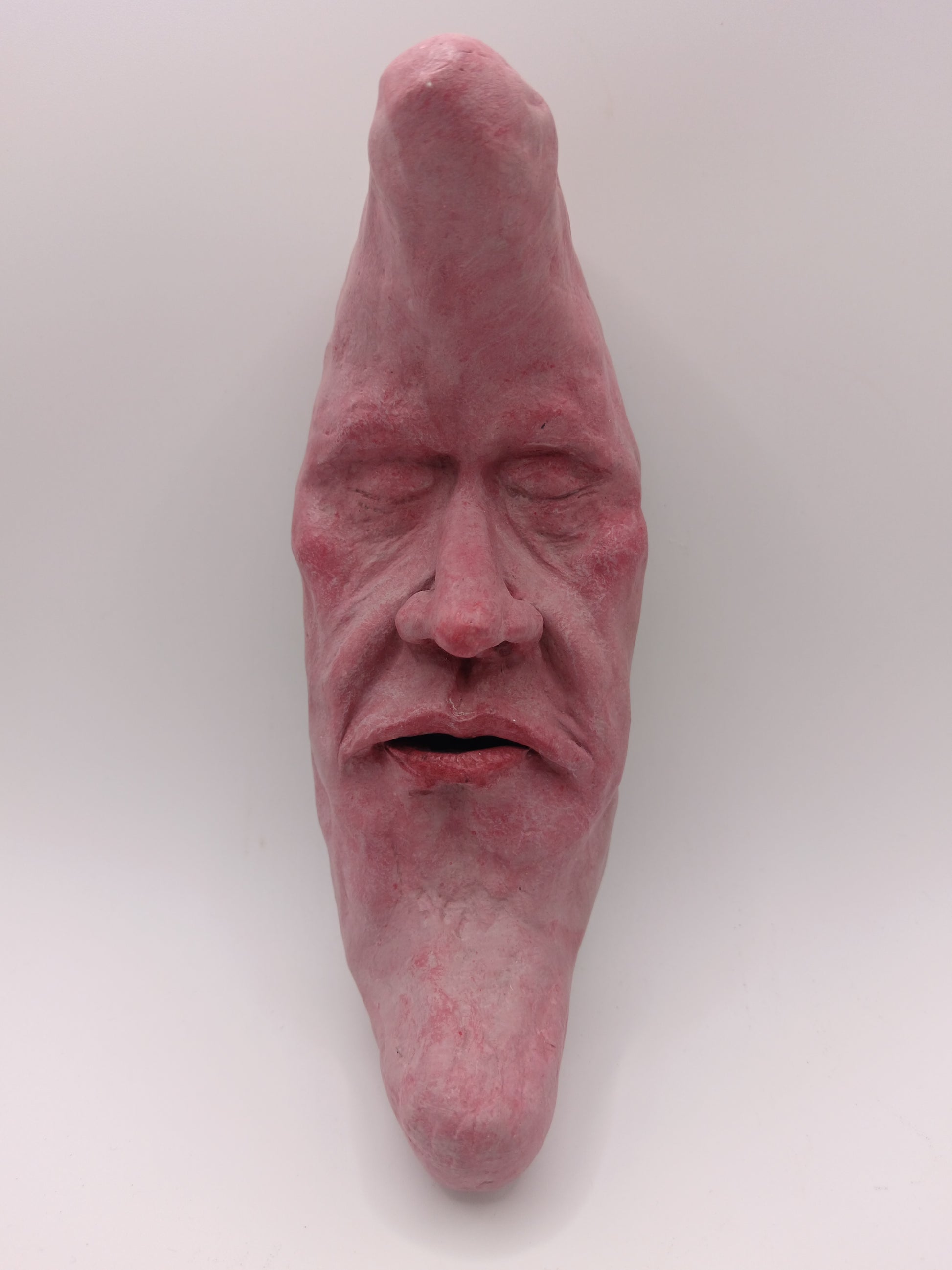 This strange character is a hand sculpted and hand painted 1-of-1 clay wall sculpture: a truly unique sculpture for a unique home.